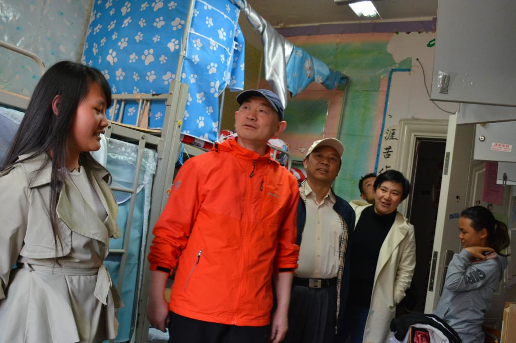 院长刘雷(左二)、副院长郭本华(左三)到学生寝室检查工作