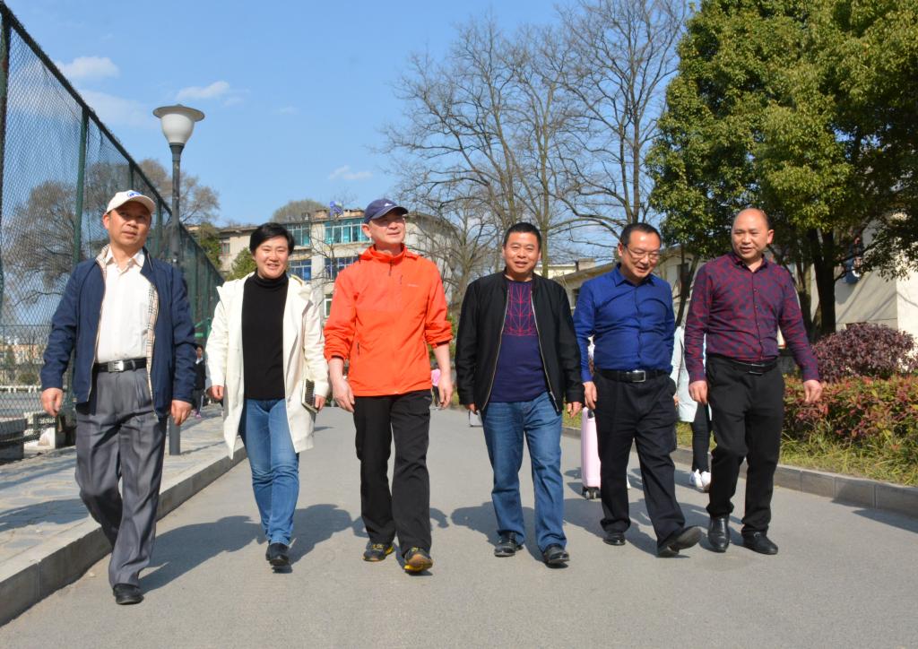 院长刘雷(左三)、副院长郭本华(左一)在校园内检查安全工作