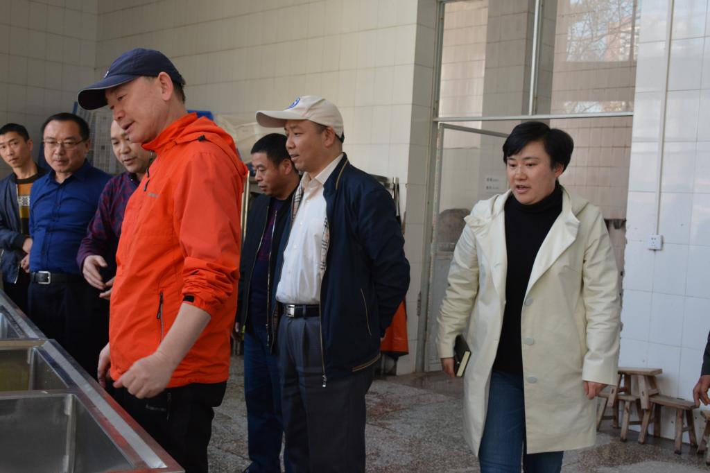 院长刘雷(前一)、副院长郭本华(中)到食堂检查准备工作
