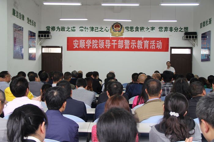 党委书记罗荣彬,院长刘雷,副院长熊国敏、王芳恒、令狐荣涛,纪委书记马力,副院长郭本华与学校80余名处级干部前往安顺监狱开展警示教育活动。