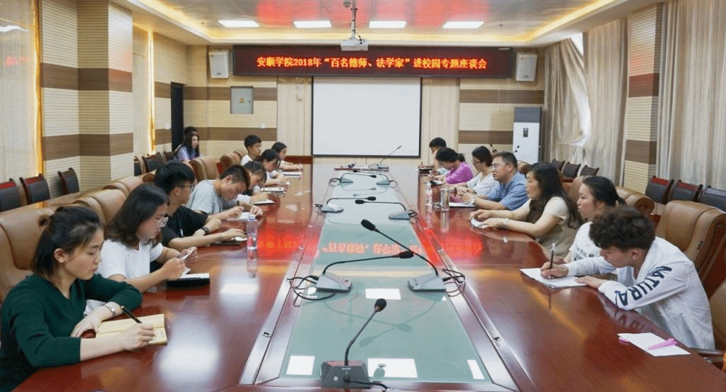 举办“百名德师、法学家”进校园座谈交流活动会场