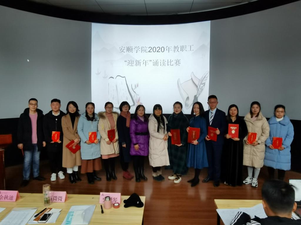 2020年“迎新年”教职工诵读比赛在旅游学院导游模拟实训室举行。