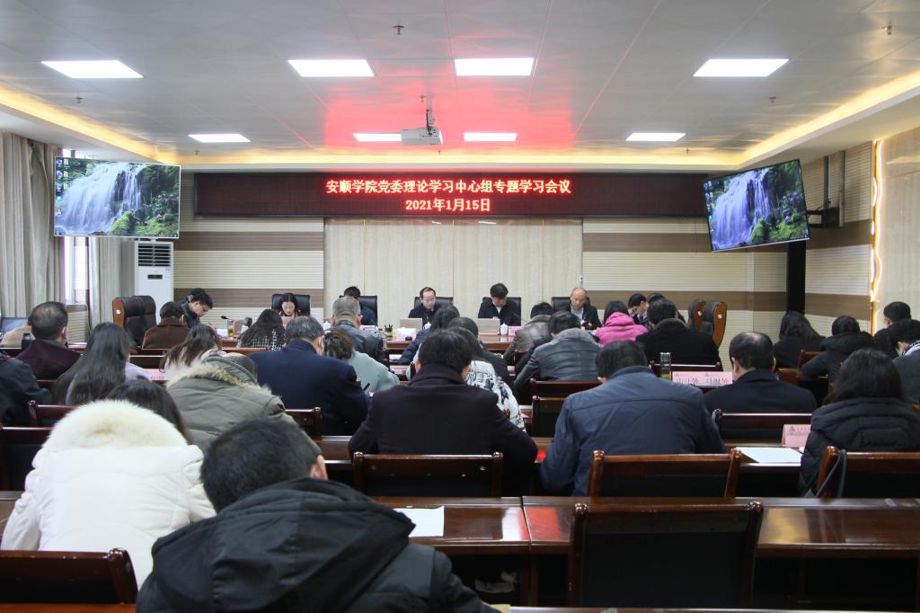党委理论学习中心组专题学习会议,学习习近平在省部级主要领导干部学习贯彻党的十九届五中全会精神专题研讨班开班式上的重要讲话、国家主席习近平二〇二一年新年贺词、《习近平谈治国理政》第三卷有关篇章、《习近平总书记教育重要论述讲义》有关章节、《论党的宣传思想工作》相关内容、《中国共产党章程》、《中共中央关于加强党的政治建设的意见》、中共中央办公厅印发《关于巩固深化“不忘初心、牢记使命”主题教育成果的意见》、全国宣传部长会议精神、《中国共产党统一战线工作条例》。