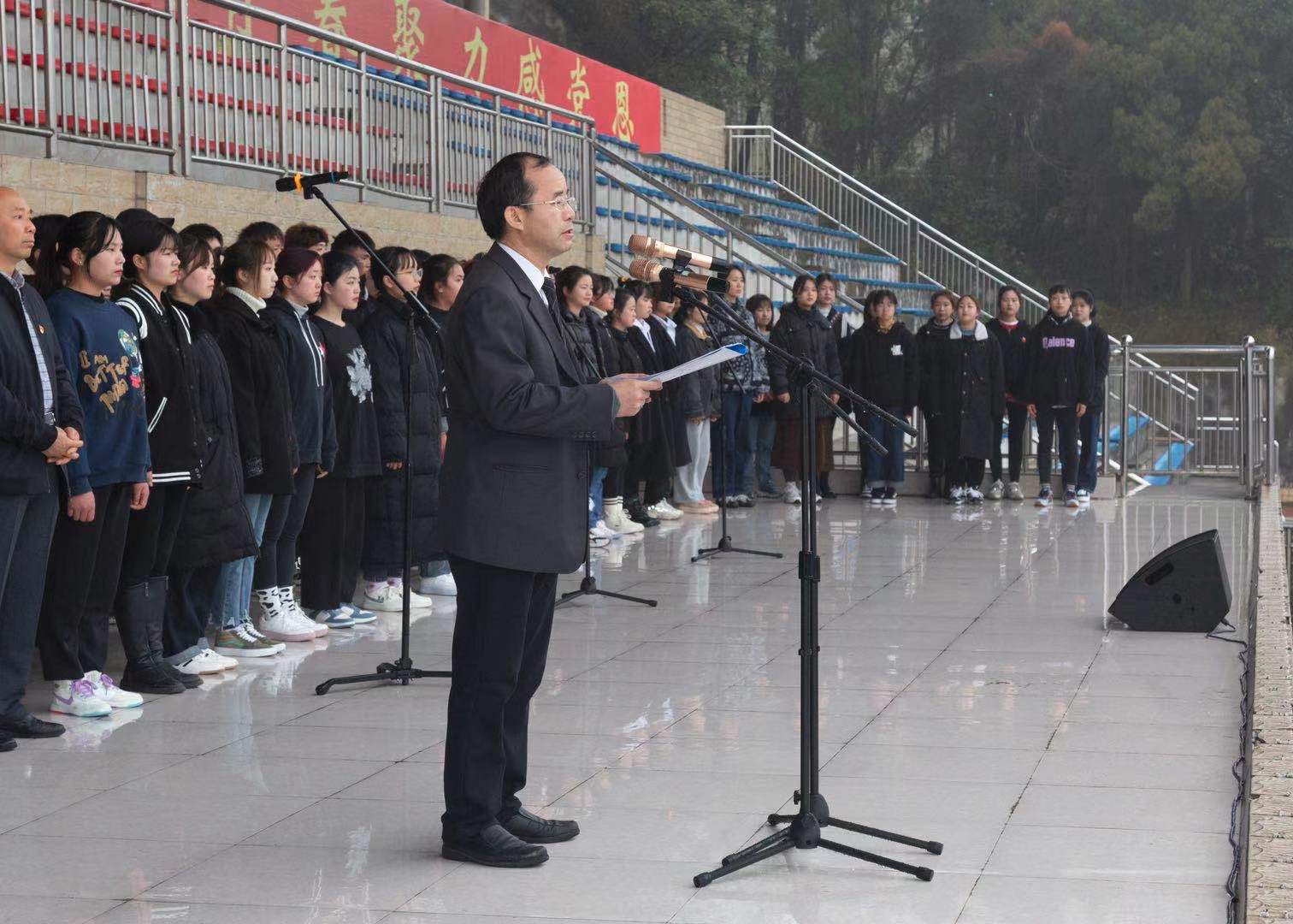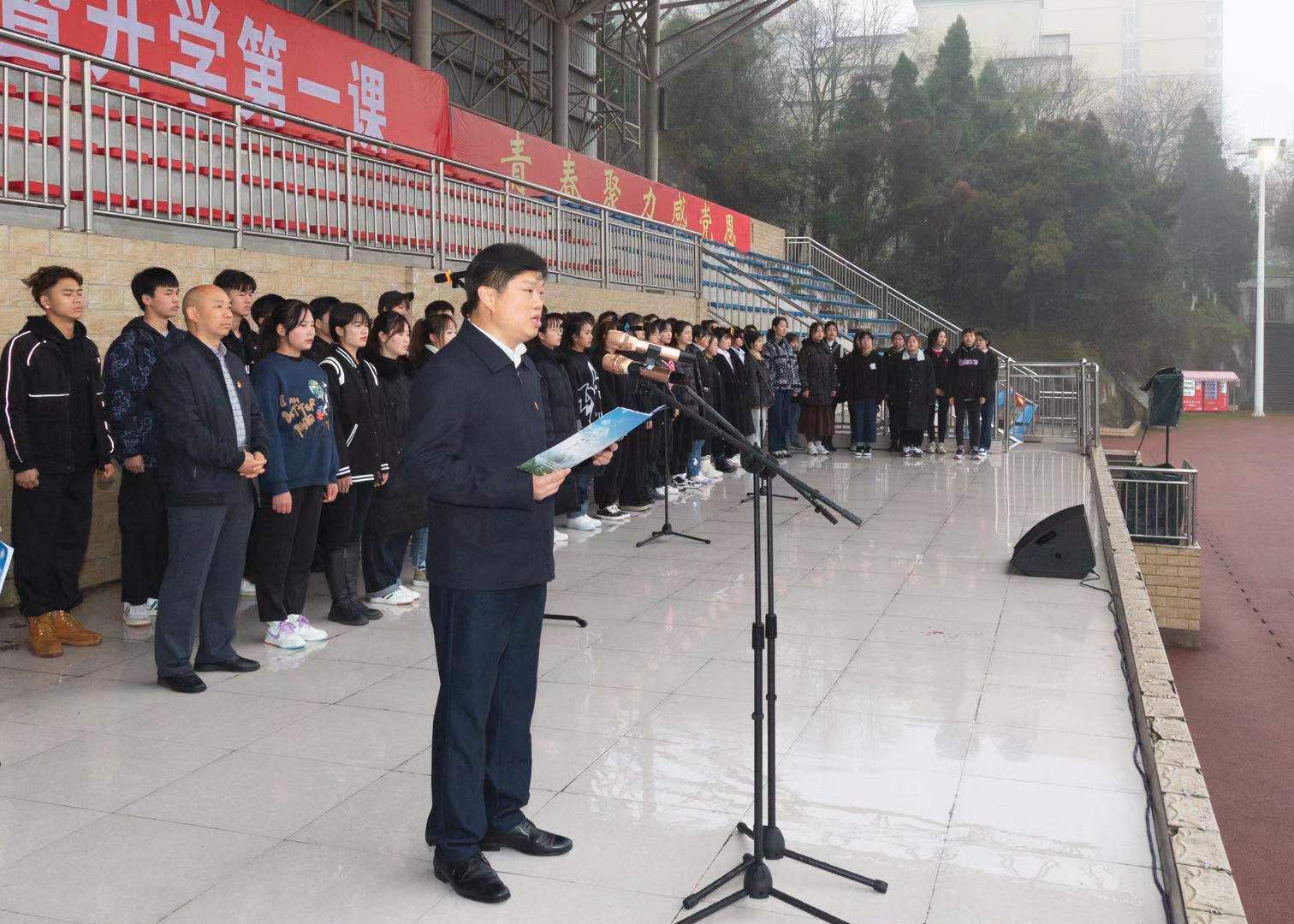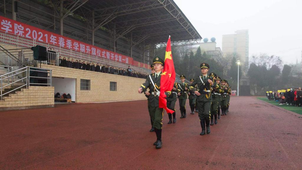 2021年春季学期升旗仪式暨“开学第一课”在学校田径场举行。