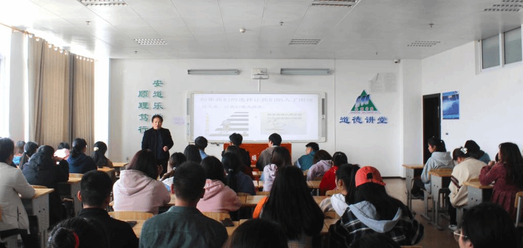 “选择成就美好未来”专题讲座在学校道德讲堂开展,政法学院书记潘昌盛主讲,政法学院2020级思政班全体同学聆听学习。