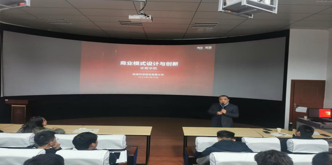 创新创业学院邀请北京新道科技有限公司双创业务部副总经理郝建平为全校100多名师生开展以“金奖项目解读和项目商业模式打磨”为题的讲座。