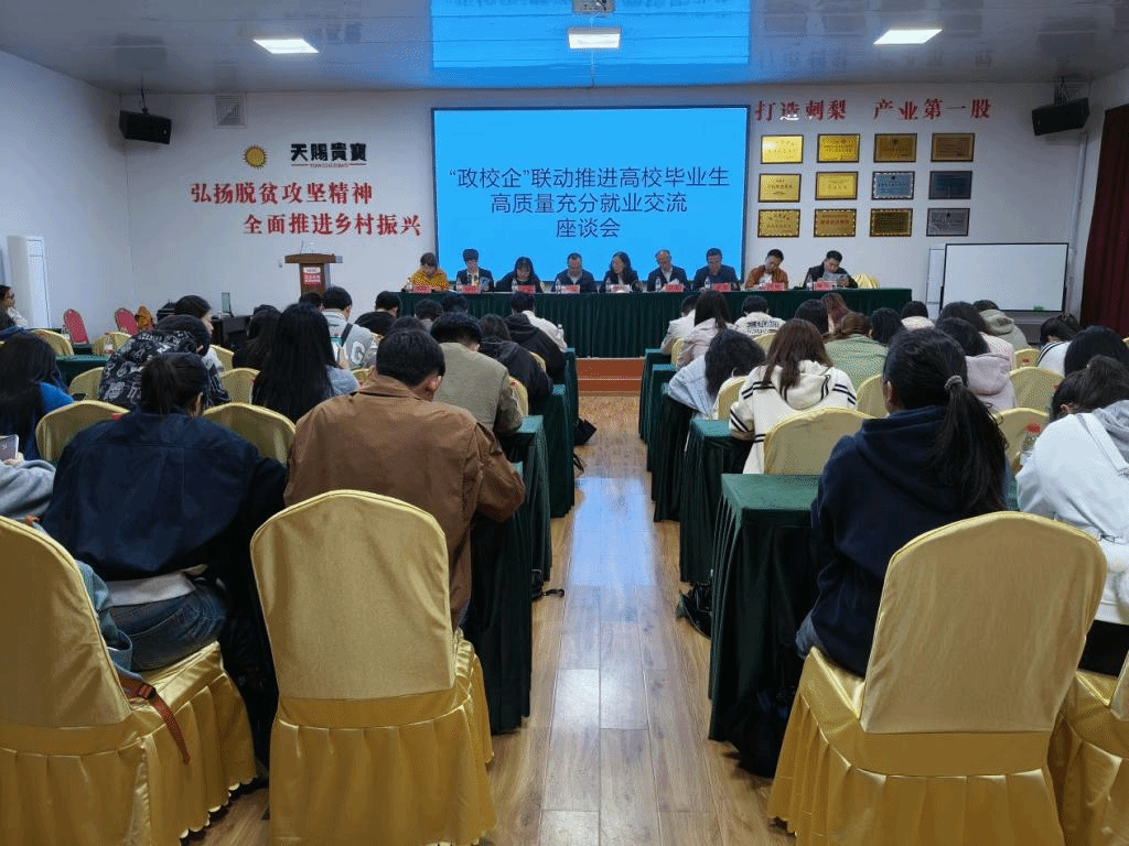 殷红敏一行带领学生实地走访了贵州金尘茶茶叶发展有限公司和贵州天赐贵宝食品有限公司。详细了解企业产品、企业发展情况和用人需求。随后在贵州天赐贵宝食品有限公司召开了“政校企”联动推进高校毕业生高质量充分就业交流座谈会。