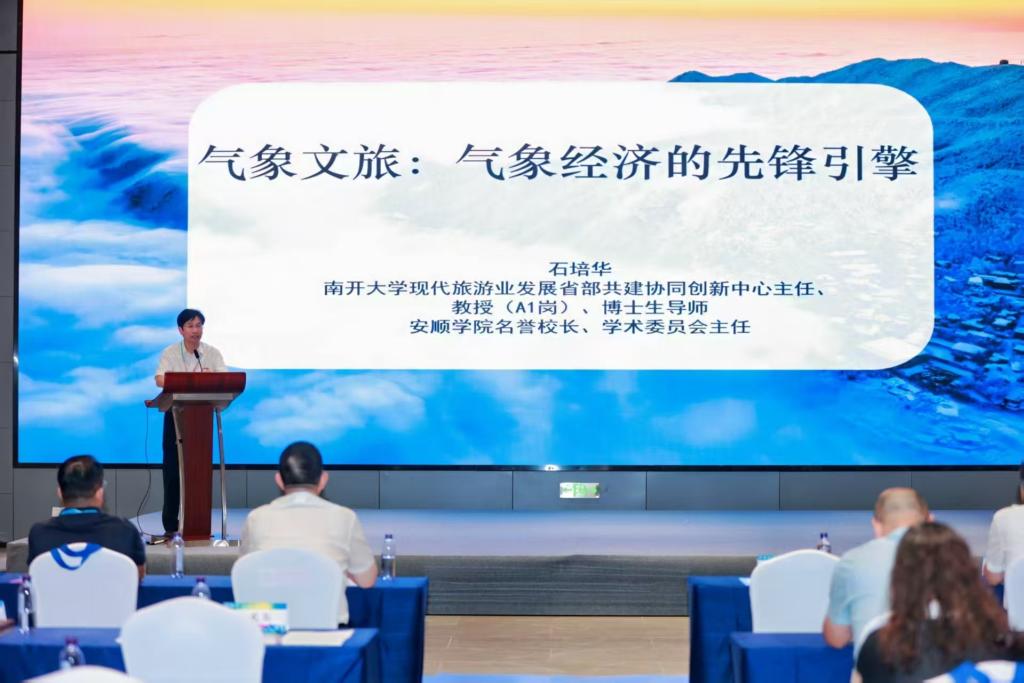 名誉校长、学术委员会主任,南开大学现代旅游业发展省部共建协同创新中心主任石培华教授作为2024年度中国气象服务协会科学技术奖“风云青年科技奖”获得者(全国共10位获奖者)受邀参会,并以“气象文旅:气象经济的先锋引擎”为题作主旨发言,系统阐释在气象与文旅产业融合领域的突破性成果。