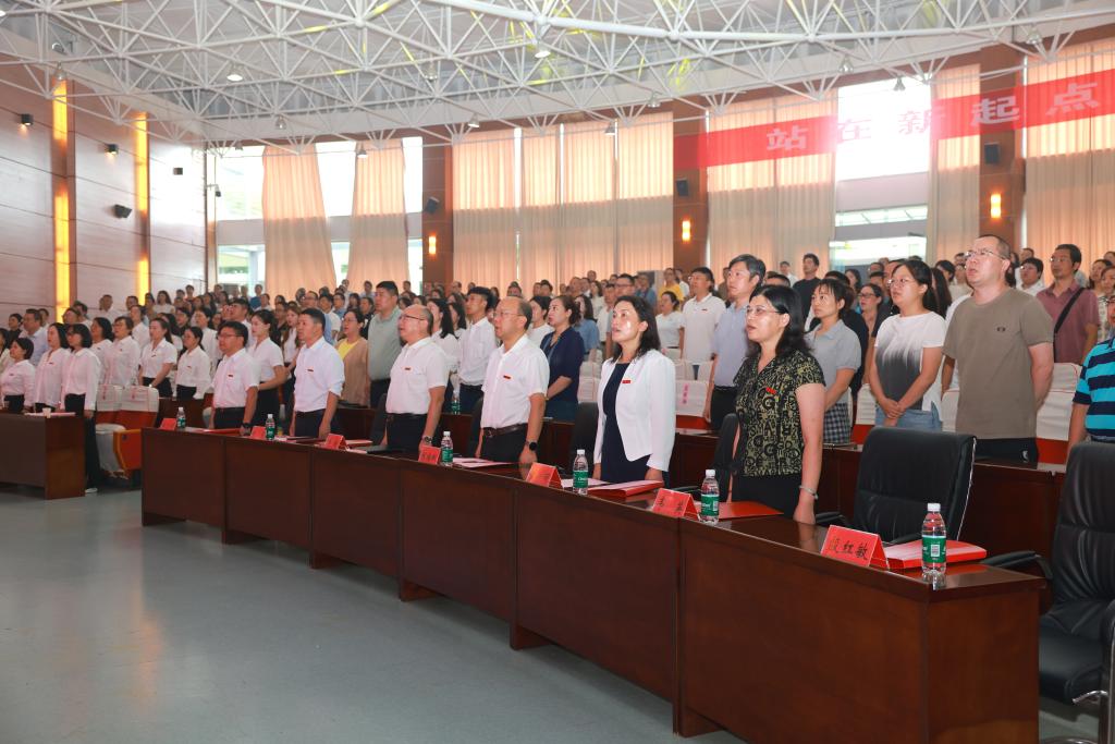 在曾丽的带领下,2025年受表彰优秀教师、教育工作先进个人、师德标兵及全体教职工共同重温教师誓词。