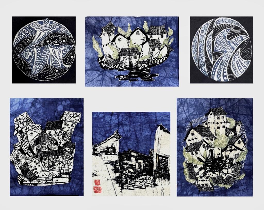 史贤琴综合绘画《蓝韵云山屯》
