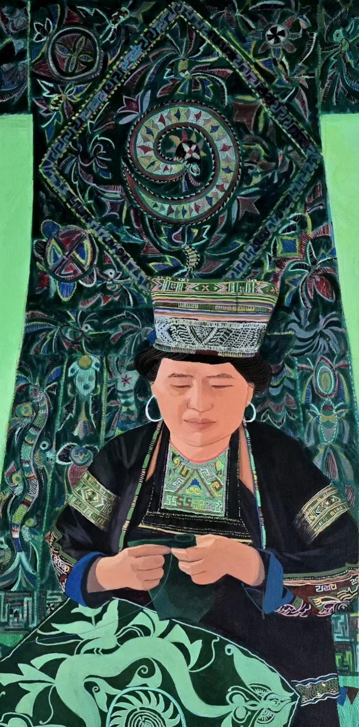 美术与设计学院史贤琴、何雪蕾、杨洋、周梅、周正碧、刘俊辰6位女教师的作品凭借其独特的艺术视角与精湛的技艺成功入选,经过初评、复评最后进入展览,她们的作品题材广泛,风格多样,不仅是艺术的集中呈现,更是当代贵州女性精神风貌的生动写照。展现了高校女性艺术工作者在创作与研究方面的深厚实力。她们以油画、水墨、综合材料等多元媒介,从个体体验与时代背景出发,表达了对社会、文化及女性身份的深刻思考,其作品体现了艺术探索与时代精神的同频共振。