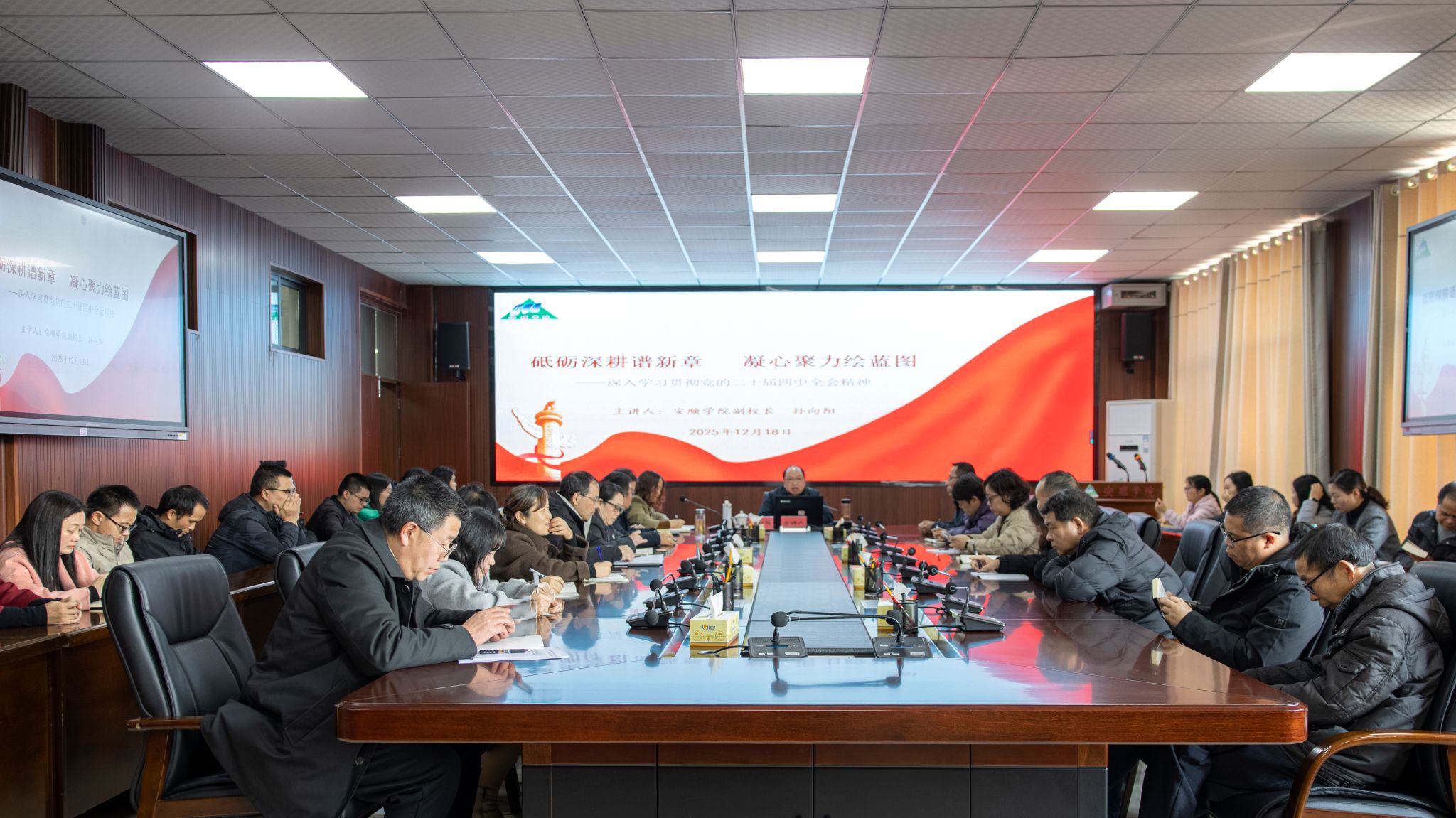安道楼五楼505会议室为数理学院教师宣讲党的二十届四中全会精神和省委十三届八次全会精神。