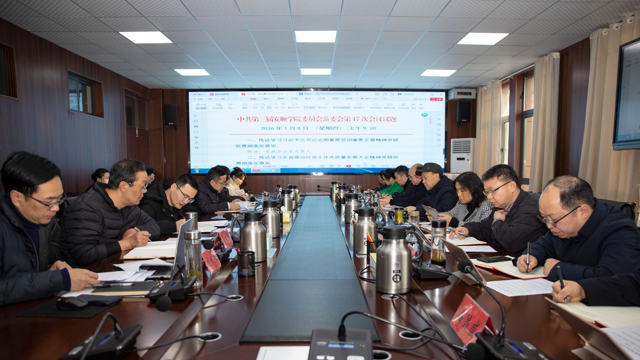 在安道楼五楼第一会议室召开党委常委(扩大)会议,学习贯彻习近平总书记近期重要贺词、重要文章精神,传达学习全省推动经营主体高质量发展大会精神,研究部署贯彻落实举措。学校党委常委、校领导,列席部门负责人参加会议。校党委书记程绪权主持会议并讲话。