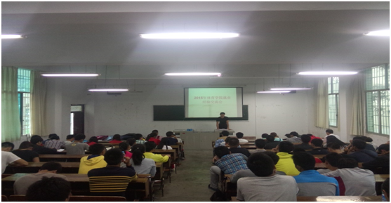 2015年6月4日下午,体育学院就业经验交流会在电教楼A07教室举行。2011届毕业生代表、原2011级体育教育班学生郭小尾分享了自己的就业经验,专职辅导员田宇老师以及体育学院2012级体育教育班全体同学参与交流。