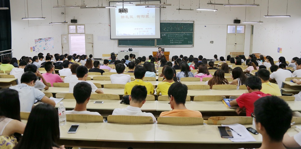 志愿者行动指导中心承办的2015年青岛·黄果树国际啤酒节暨贵州省第十届旅游发展大会——志愿者培训会在新教学楼A11教室举行。经管学院党总支书记赵伶俐主讲。共青团