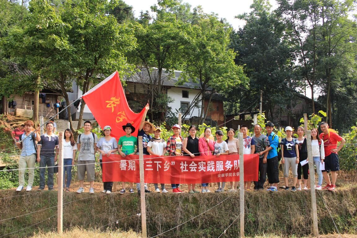 我校农学院赴紫云县开展“精准扶贫同步小康”暑期“三下乡”社会实践活动。本次实践由农学院党总支书记喻辉带队,师生共23人组成,时间从7月18日开始至23日结束。此期间实践服务队相继在水塘镇格凸河村、格丼村、银山村和大河苗寨进行调研活动,通过访谈的形式,开展了有关不同产业方式对农村经济影响的调查,同时对当地葡萄种植进行了田间种植指导。