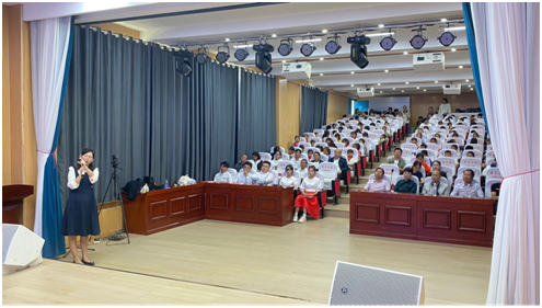 省级普通话水平测试员刘蕊杏老师、蓝芳老师分别就“计算机辅助普通话水平测试”“普通话难点音发音技巧”对在场的夏官小学老师、同学进行了培训。培训过程中,师生们认真听讲、积极互动,现场气氛热烈、融洽。最后,人文学院六位同学表演了朗诵节目《美丽中国》,将活动气氛推向高潮。