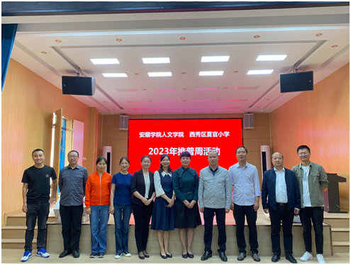2023年9月14日,人文学院推普工作队到夏官小学开展推普活动。本次活动,由人文学院院长胡赤兵教授为队长,副书记杨明副教授、副院长李云根教授为副队长,省级普通话水平测试员蓝芳、刘蕊杏、万雷、李聚刚等老师以及7位同学为成员,组成了一支精干的师生推普工作队。围绕第26届推普周“推广普通话 奋进新征程”主题,推普工作队师生大力宣传“推广普及国家通用语言文字”的重要性,服务铸牢中华民族共同体意识、助力乡村振兴。
