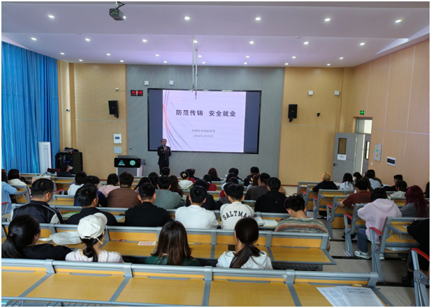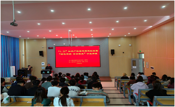 主办,招就处、科研处、保卫处承办的“4.26”知识产权宣传周进校园暨“防范传销安全就业”公益讲座在安道楼一楼阶梯教室举行。来自各学院120余名学生代表参加活动。