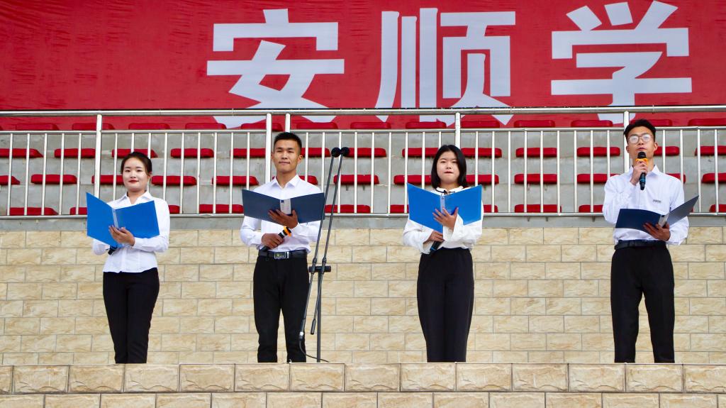 在庄严的奏唱国歌仪式后,四名分别来自艺术学院、体育学院、旅游管理学院的同学:杨金卉、李文波、雷燕灵、王青松带来了诗朗诵《起航》,点燃了全场安院新人的梦想与激情。