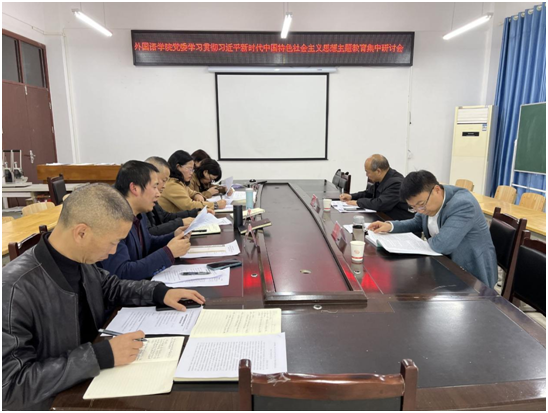 按照会议议程,会议传达学习了习近平总书记关于教育的重要论述相关内容和近期重要讲话精神,外国语学院党委班子成员围绕以“以学铸魂,深入学习习近平总书记关于教育的重要论述,推进外国语学院学习贯彻习近平新时代中国特色社会主义思想主题教育走深走实”为主题开展研讨发言。