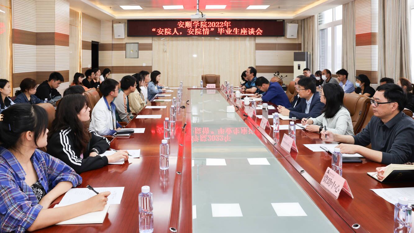 2022年“安院人·安院情”毕业生座谈会在特教大楼六楼会议室举行,学校党委书记罗荣彬出席会议并讲话。