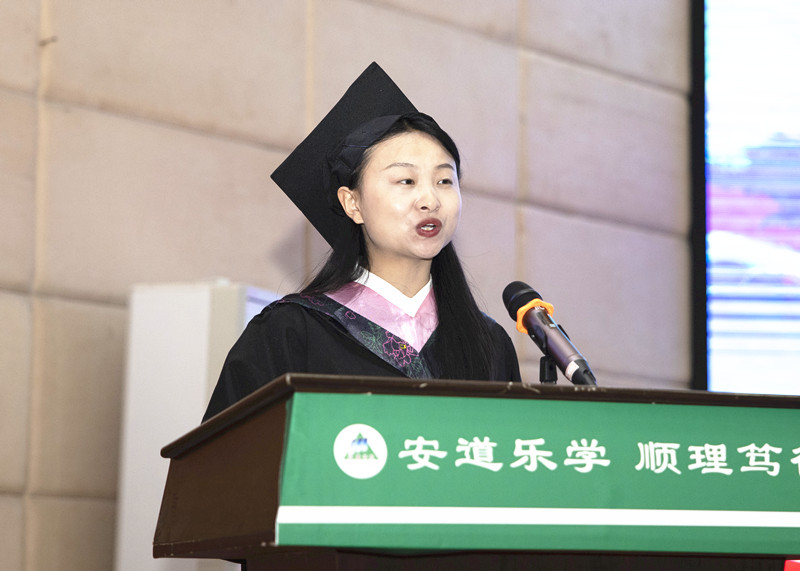 教师代表、“全国模范教师”称号获得者、教育科学学院教师班永飞作发言,表达了对毕业生的祝福和期望;毕业生代表、教育学院2019级学前教育专业欧阳佩同学作发言,表达了对母校的不舍和感恩。