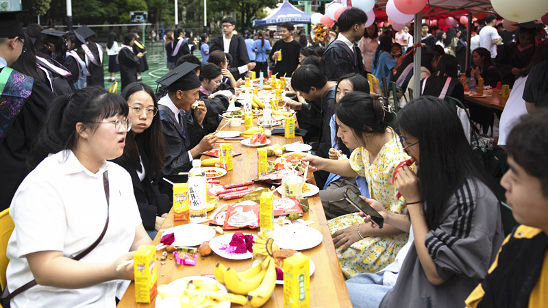 2023届毕业生冷餐会。精心准备的点心甜美可口,一份份糕点、一杯杯饮料、一盘盘水果……满载母校的味道,冷餐会以冷餐不冷的方式欢送全体毕业生奔赴美好前程。(文/图:宣传部 蒋欣原/宣传部 王键,学生记者 张婷、何春阳)