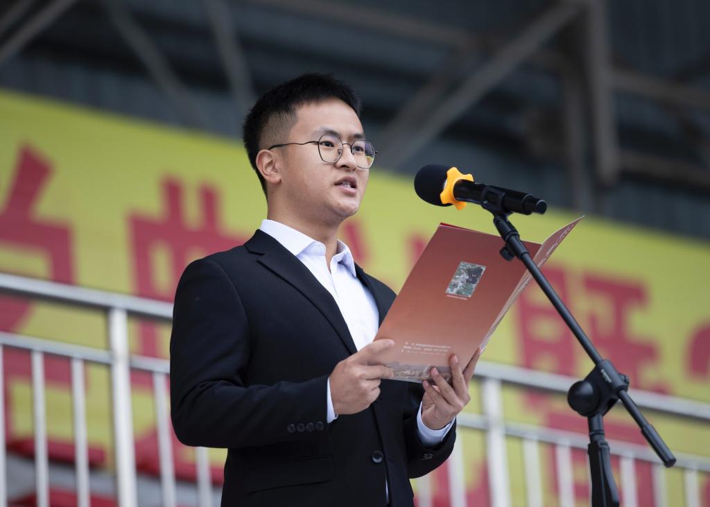 资源与环境工程学院2023级地理科学类专业张钧彦同学代表全体军训学员,郭青奥同志代表执训教官分别表决心,将圆满完成军训各项任务。