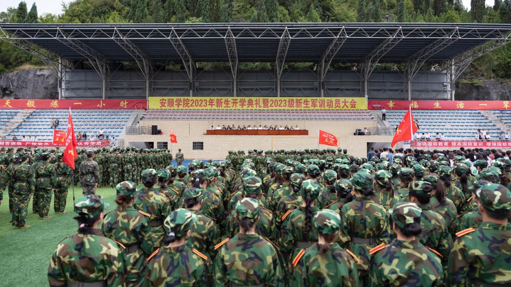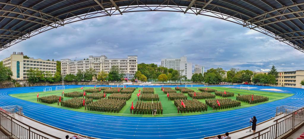 2023级新生开学典礼暨2023级学生军训动员大会在综合运动场隆重举行。