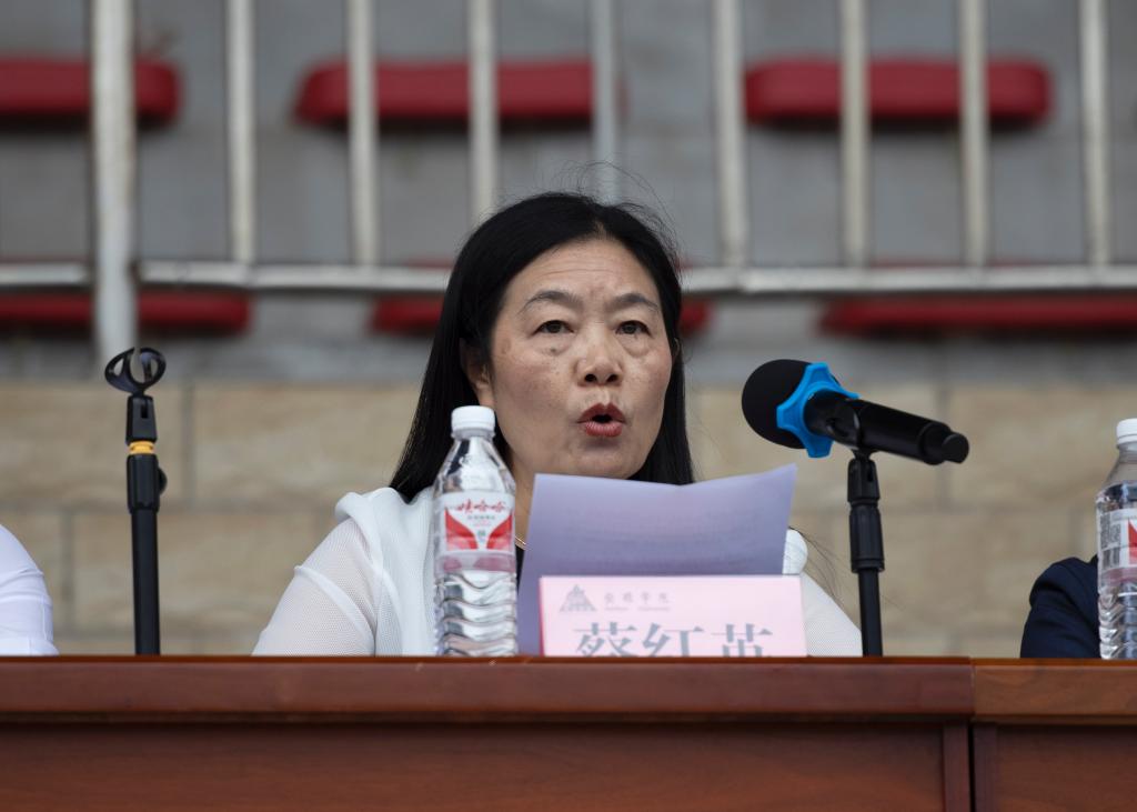 党委委员、副校长,军训团团长殷红敏作讲话。殷红敏表示,不苦不是军训,磨练才有收获,希望同学们像军人一样练就铁骨铮铮、硬气朗朗,以良好的精神面貌描绘大学生活的别样精彩,成为堪当民族复兴重任的时代新人,成为德智体美劳全面发展的社会主义建设者与接班人。为高质量完成此次军训,殷红敏提出三点要求,一是厚植家国情怀、增强忧患意识,通过军训进一步树立学习报国之志;二是守纪律听指挥、讲团结同奋斗,通过军训进一步形成奋力前行之势;三是愿吃苦能耐劳、受考验敢拼搏,通过军训进一步培育个人优良作风。