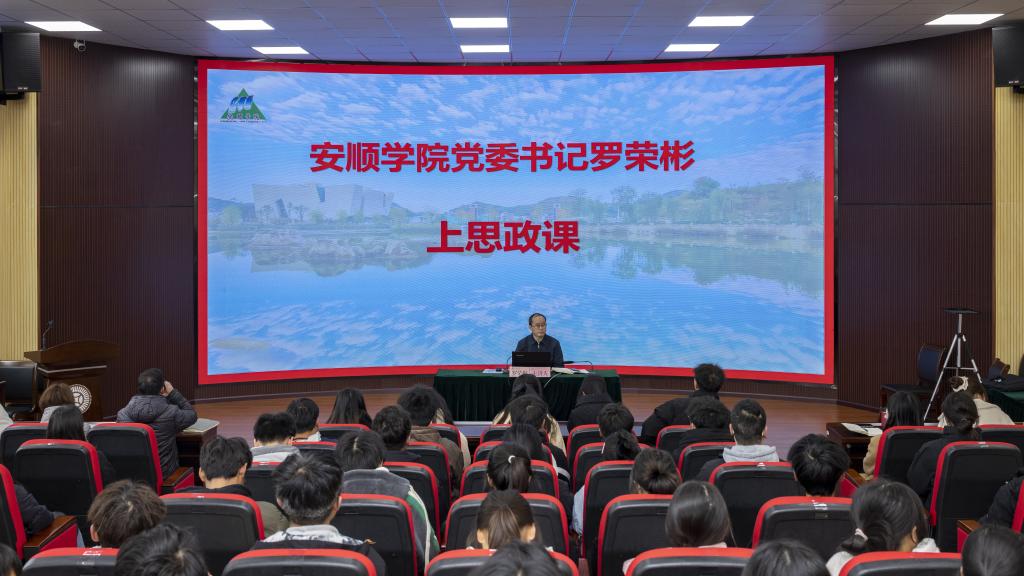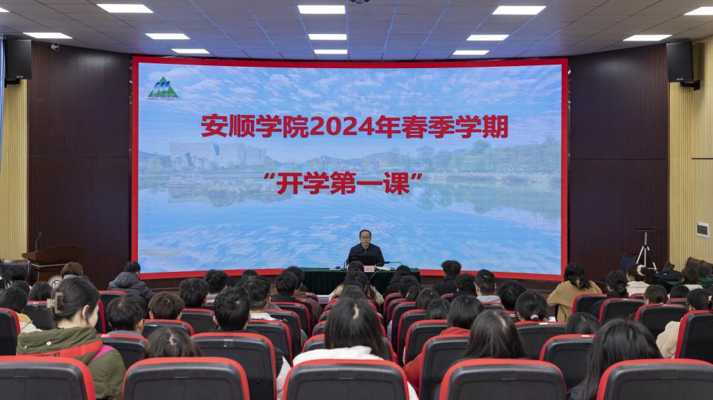 党委书记罗荣彬在安道楼二楼阶梯教室为师生讲授2024年春季学期“开学第一课”思政课。马克思主义学院2022级中国共产党历史专业、经济与管理学院2023级工商管理专业师生共同聆听学习。“开学第一课”思政课旨在引导广大学生进一步增强国家意识、强化国家认同,激发爱国之情和报国之志。