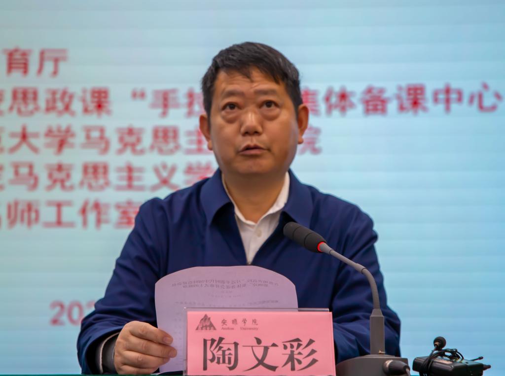 党委副书记陶文彩致欢迎词,省教育厅思政处领导和全国高校思政课“手拉手”集体备课中心负责人汪勇教授分别发表讲话,特别指出作为高校思政课的承担者,办好思政课,马克思主义学院责无旁贷,上好思政课,思政课教师队伍责任重大。马克思主义学院理应成为办好高校思政课的前沿阵地和战斗堡垒,必须守土有责、守土尽责、久久为功!