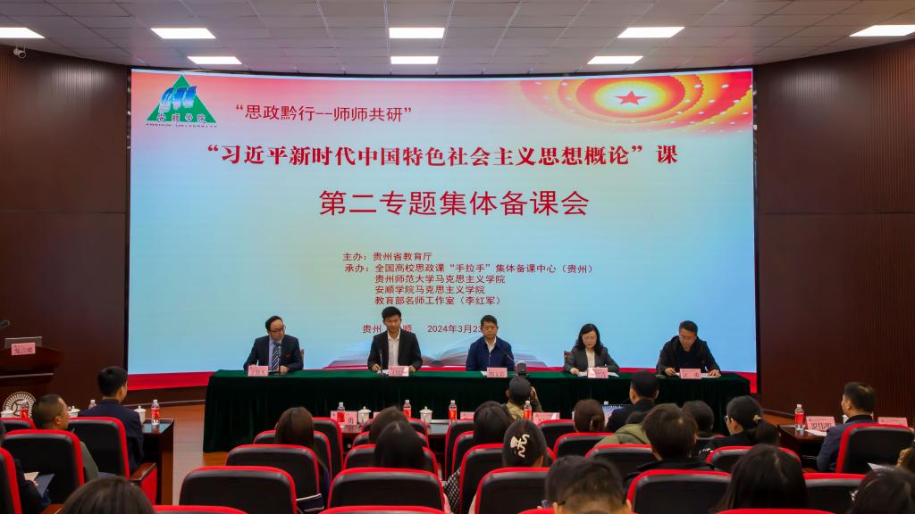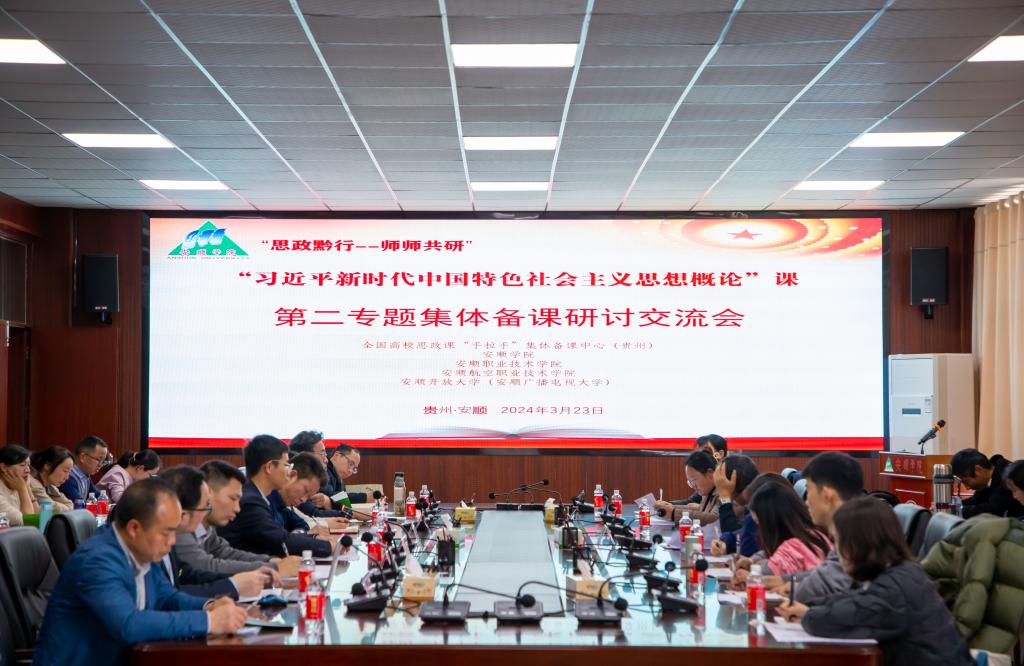 马克思主义学院、贵州师范大学马克思主义学院、全国高校思政课名师工作室(贵州师范大学)承办,安顺职业技术学院、贵州民用航空职业学院、安顺开放大学协办的贵州省高校“习近平新时代中国特色社会主义思想概论”课程集体备课会,于2024年3月23日以线上加线下相结合的方式在