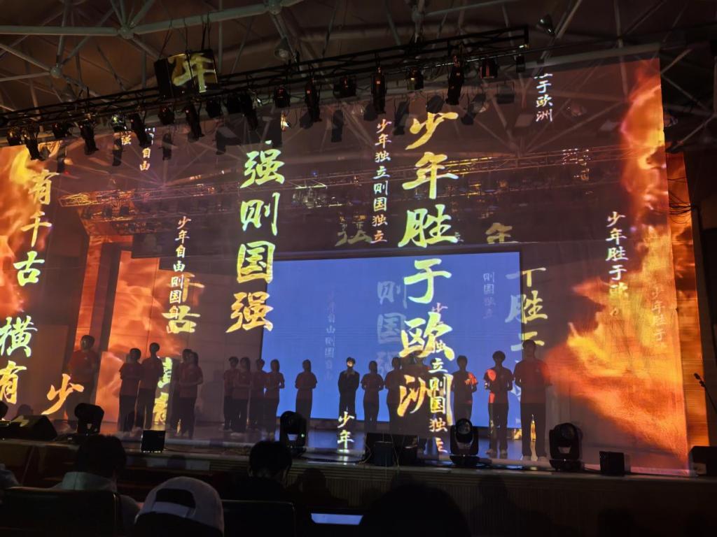 “传承与新生”篇章,晚会聚焦文化传承与青春活力:唱跳《快乐崇拜》以欢快节奏展现新青年蓬勃朝气;服装展示《衣冠华夏:一部穿在身上的通史》独具匠心,模特身着各朝代服饰走秀,让华夏文明的璀璨历史在服饰流转中具象呈现,实现传统与现代的巧妙融合;演唱加朗诵《少年中国说》以“少年强则国强”的铿锵誓言,点燃全场爱国热情与奋斗激情。