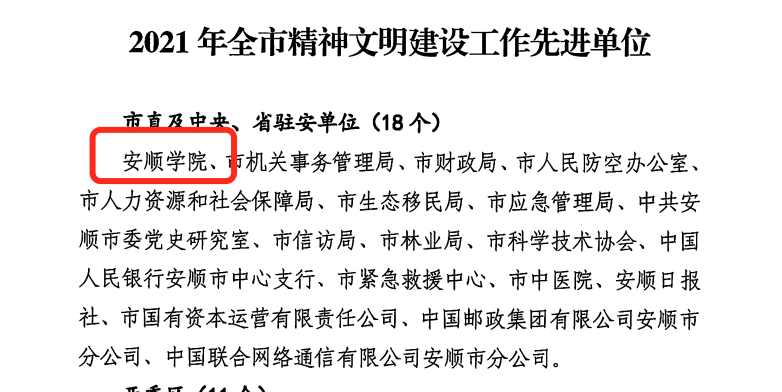 近日,安顺精神文明建设指导委员会决定授予94个单位“2021年全市精神文明建设工作先进单位”称号,