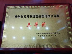 2023年3月29日,“同心跟党走 奋进新征程”全省教育系统统战理论知识竞赛在贵州大学西校区举行。竞赛分为初赛及决赛两个阶段。初赛以现场闭卷答题形式进行,全省各市州委教育工委、各省属高校共25支参赛队伍同时参加;决赛采用现场知识抢答形式,由初赛评选出的12支参赛队伍同时参加比赛,评选出一等奖2名、二等奖4名、三等奖6名。