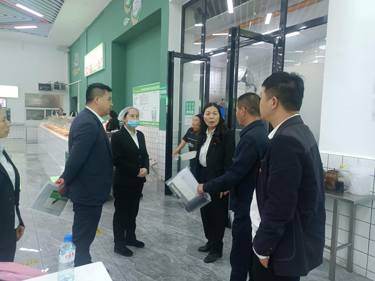 检查组一行查看思源居食堂食品安全整体情况