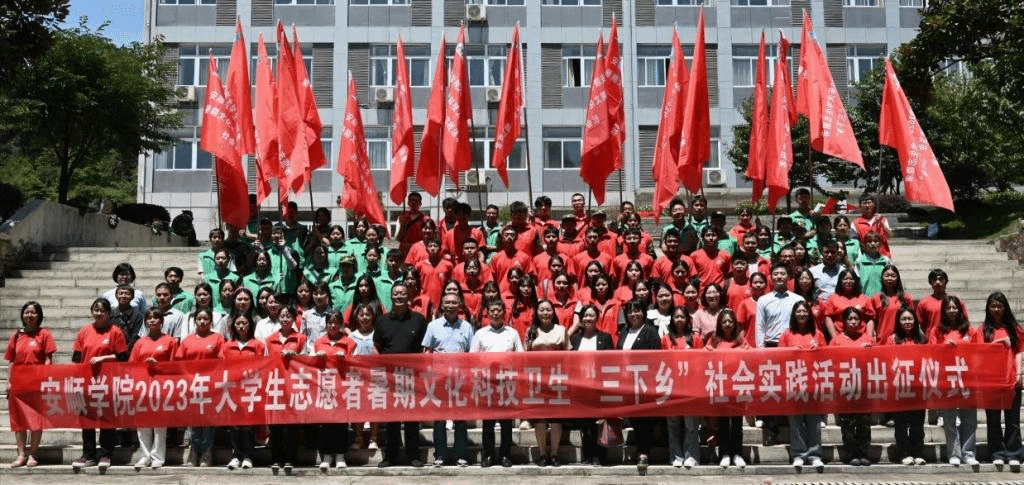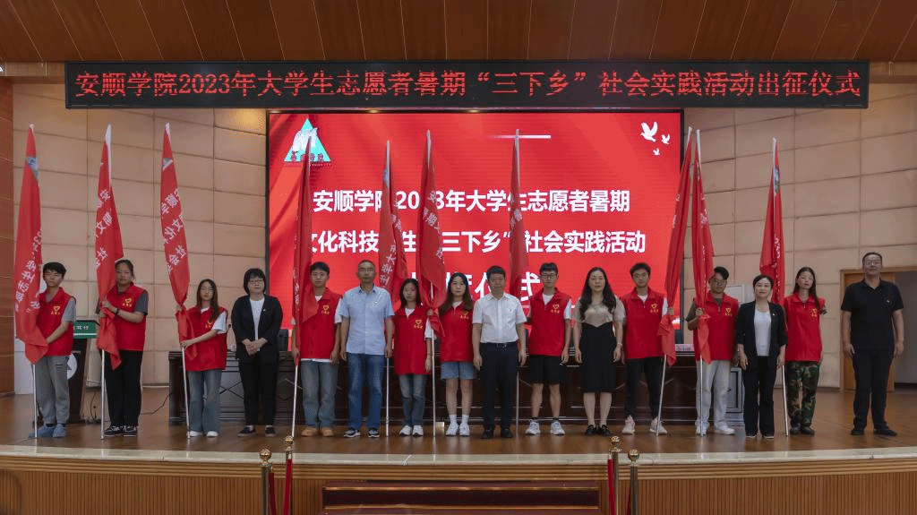 举行2023年大学生暑期志愿者文化科技卫生“三下乡”社会实践活动出征仪式。