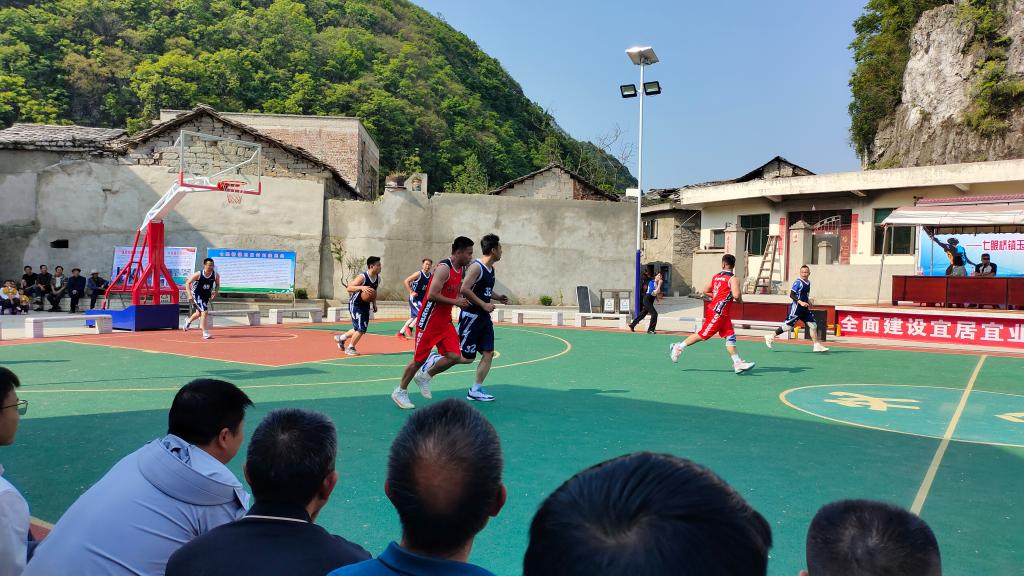 教职工代表队和七眼桥镇干部职工代表队在玉龙村新竣工的村民文体广场玉龙广场篮球场所展开的热烈、精彩的篮球友谊赛。比赛过程中,双方球员斗志昂扬,来回穿梭,你争我夺,虽然不乏激烈对抗,但更多的是对手之间的相互尊重,通过篮球友谊赛增进了
