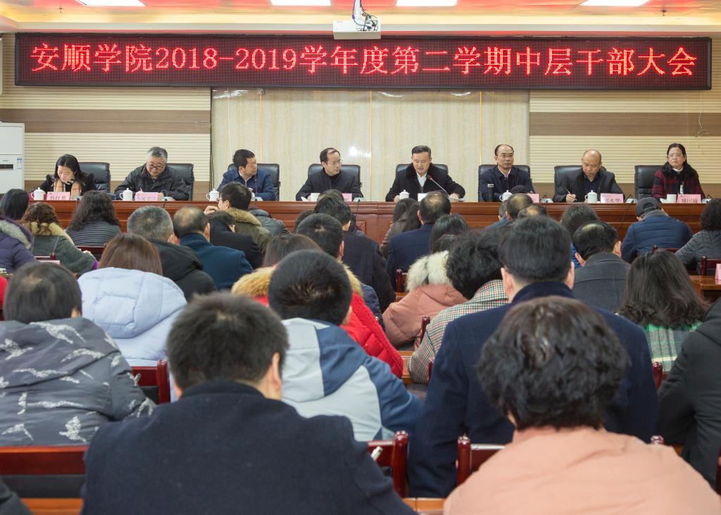 罗荣彬书记讲话。他从统一思想,以习近平新时代中国特色社会主义思想指引学校各项工作;树牢改革意识,贯彻落实全国、全省、全市教育大会和全国、全省高校思想政治工作会议精神,推进学校改革发展;强化党建引领,贯彻全国高校党的建设工作会议、省部级主要领导干部坚持底线思维着力防范化解重大风险专题研讨班、全省县以上主要领导干部专题研讨班、全省国有企业和高等院校党的建设工作推进会、全市国有企业和学校党的建设工作推进会精神,推进学校党建工作;提升服务能力,助力脱贫攻坚等工作提出具体要求。