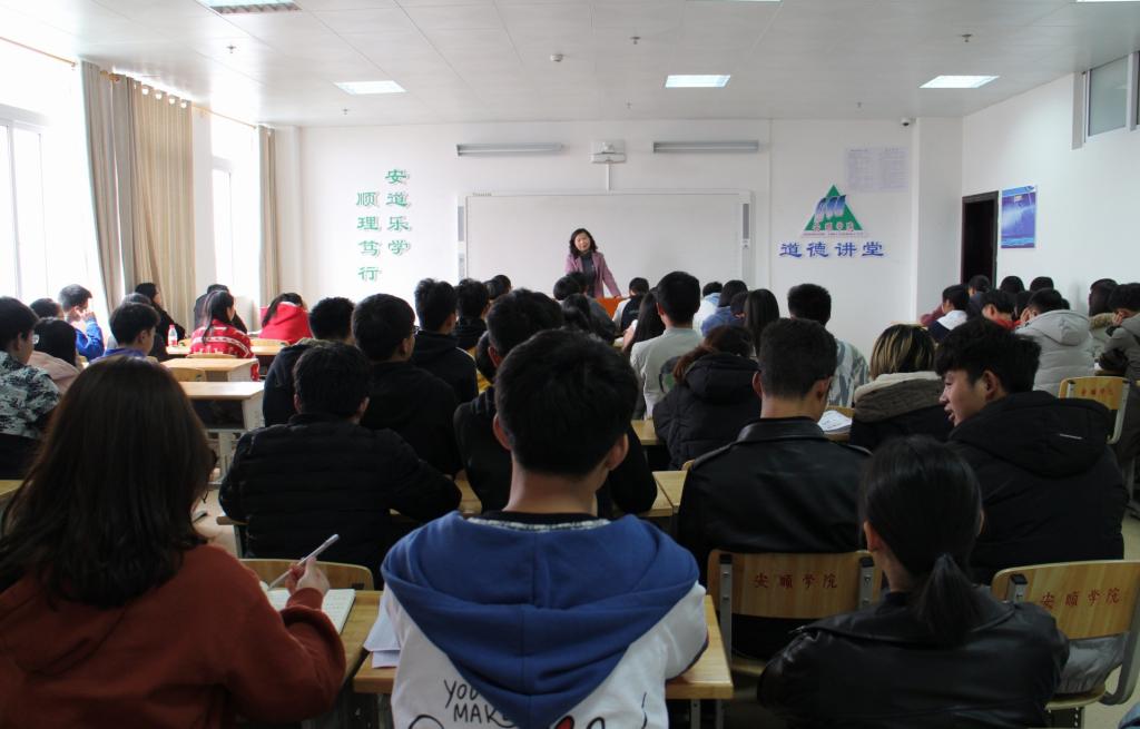 道德讲堂宣讲员、学习宣传贯彻党的十九大精神和习近平总书记在贵州省代表团重要讲话精神高校名师宣讲团成员、经济与管理学院院长赵伶俐主讲,经济与管理学院学生听讲。