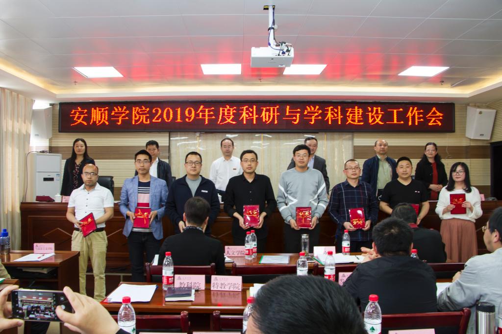 办公室关于对2018年度先进科研管理单位与优秀科研信息员、科研立项等奖励文件。纪委书记蔡红英宣读了校级重点支持学科2017年度考核结果文件。校领导为2018年科研获奖代表、优秀科研信息员及先进科研管理单位颁奖。