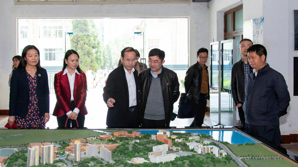 座谈会后,曾羽书记一行在罗荣彬书记、吴次南校长的陪同下,参观了我校改扩建工程规划沙盘、改扩建工程建设项目等。(文/图:王智勇/王键)