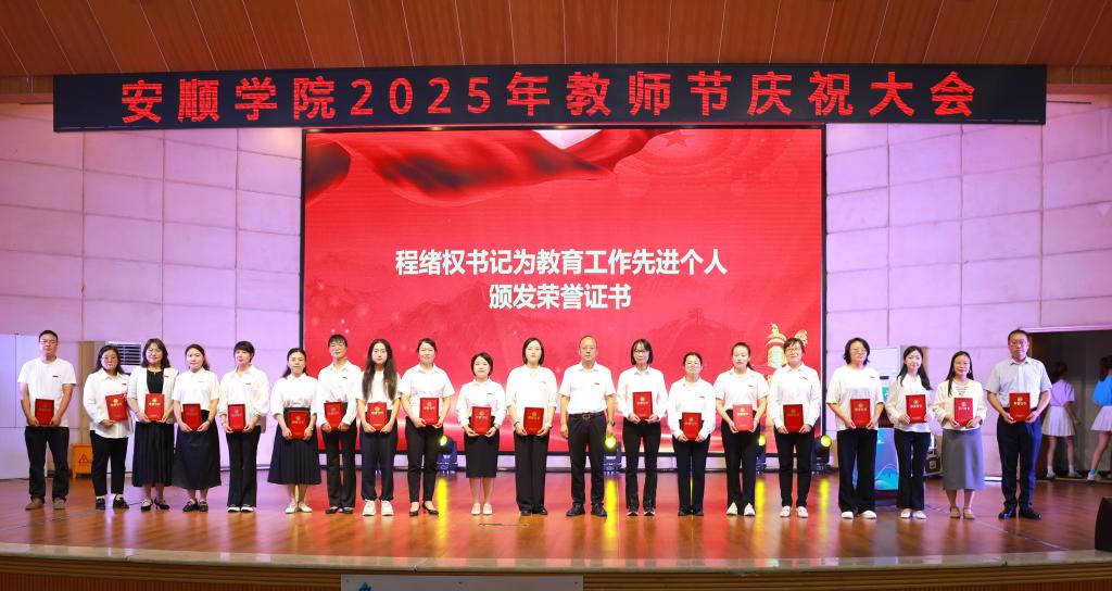 程绪权代表学校向全体教师表达诚挚的祝福,向获得优秀教师、教育工作先进个人以及师德兵的老师们表示热烈的祝贺,希望广大教师弘扬新时代教育家精神,牢记习近平总书记对教育事业的谆谆教导,树立躬耕教坛,强国有我的志向和抱负,践行安道乐学顺理笃行的校训,坚守为党育人、为国育才的初心,提灯引路,育梦成光,努力培养德智体美劳全面发展的社会主义建设者和接班人。