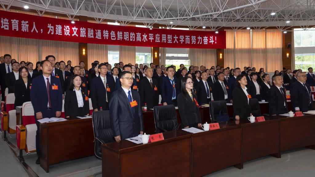 第二届委员会向大会作题为《抢抓机遇创新发展 勇担使命培育新人 奋力建设文旅融通特色鲜明的高水平应用型大学》的报告。报告分四个部分:过去五年的工作;未来五年的发展目标;未来五年的主要任务;加强党的全面领导,为高质量发展提供坚强保障。